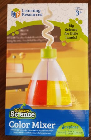 Este sencillo juego para mezclar color ha causado furor en mi casa. Es solo un envase plástico, que está dividido en dos espacios y cuya tapa tiene ese tirabuzón. La ciencia es sencilla. Pones un líquido de cada color en los dos espacios del envase, y al girarlo, estos se mezclan dando lugar a un tercer color.