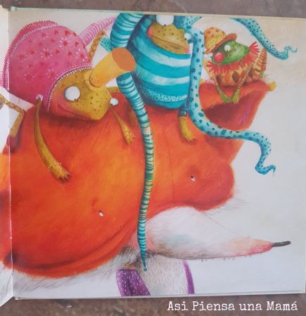 Pero él sigue inventando: una cola para atrapar moscas, una trompa para aspirar como oso hormiguero, un caparazón para protegerse como tortuga, unos lentes para ver de noche o un tubo para respirar bajo el agua y siguen fallándole los inventos.